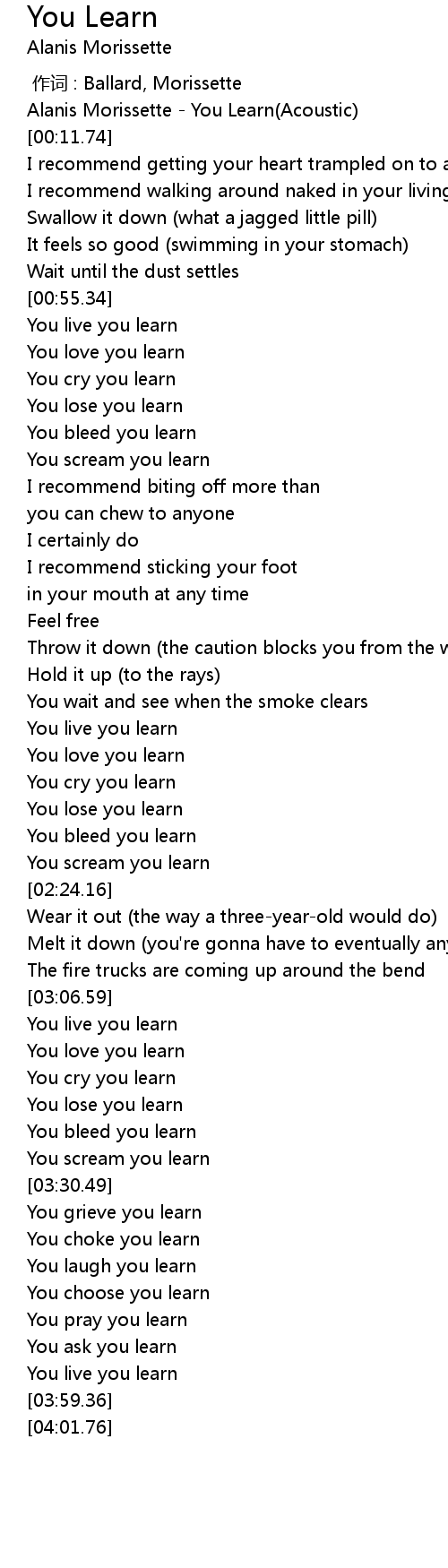 | [00:00.00] | Alanis Morissette You Learn Acoustic |