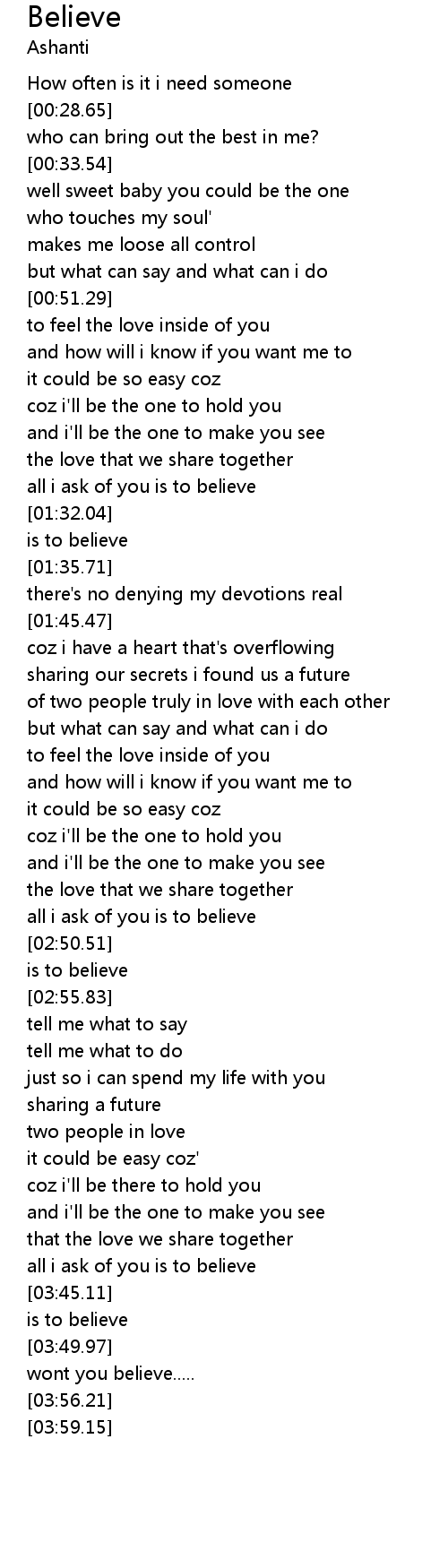 all i ask of you is to believe |
