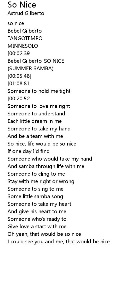 | [00:03.32] | Bebel GilbertoSO NICE |