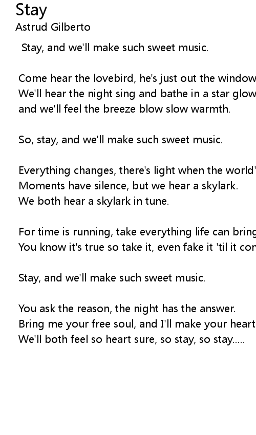 So, stay, and we'll make such sweet music. |