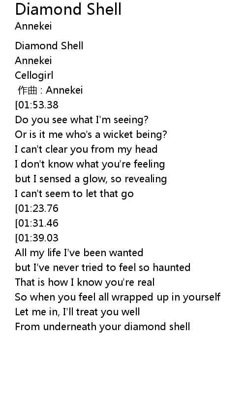 | [02:51.17] | From underneath your diamond shell |