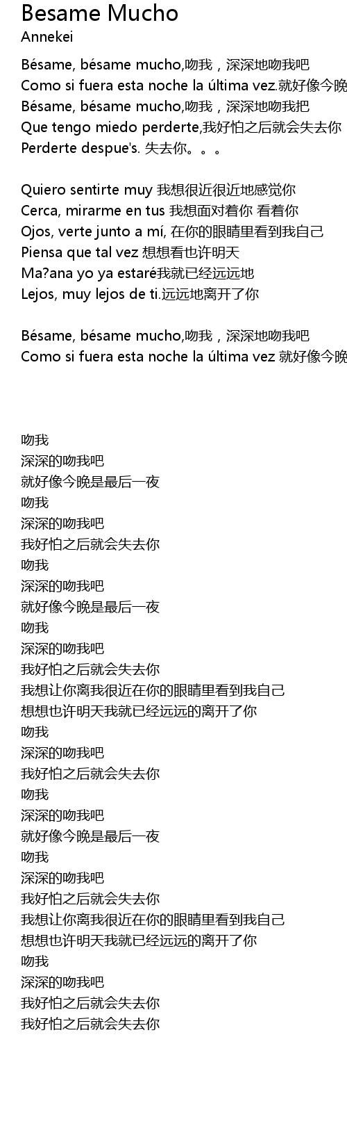 | Bésame, bésame mucho,吻我,深深地吻我吧 | |