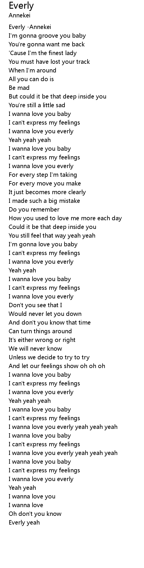 | [02:52.947] | I wanna love you everly |