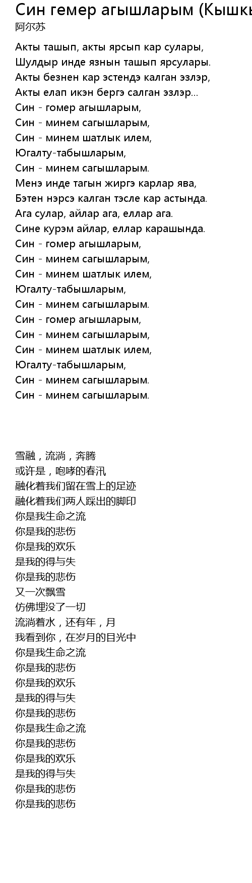 Син гемер агышларым (Кышкы романс)  Lyrics