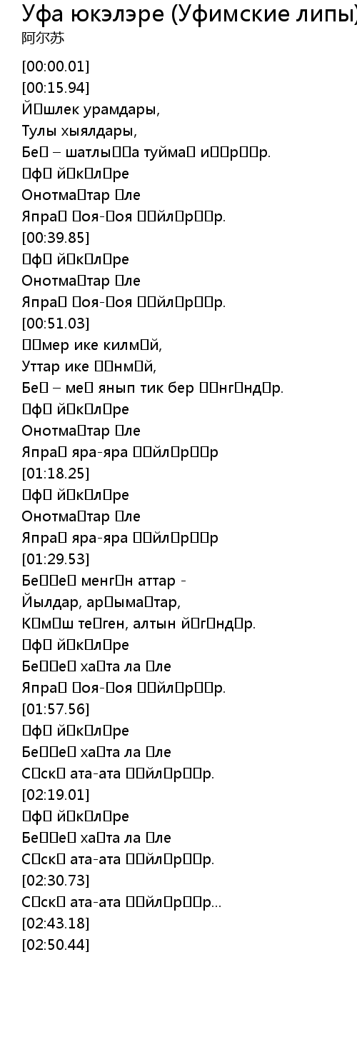 | [01:45.43] | Өфө йүкәләре |