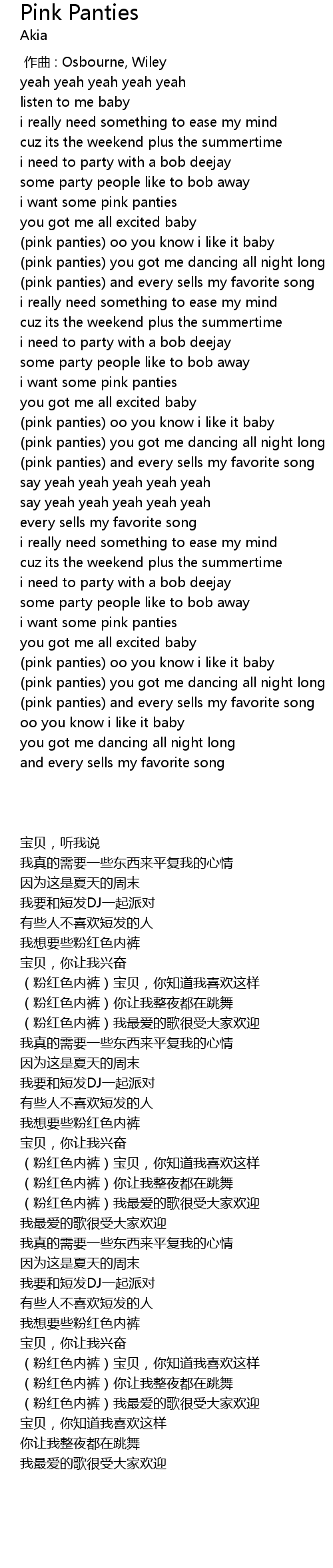 | [02:29.930] | (pink panties) and every sells my favorite song |