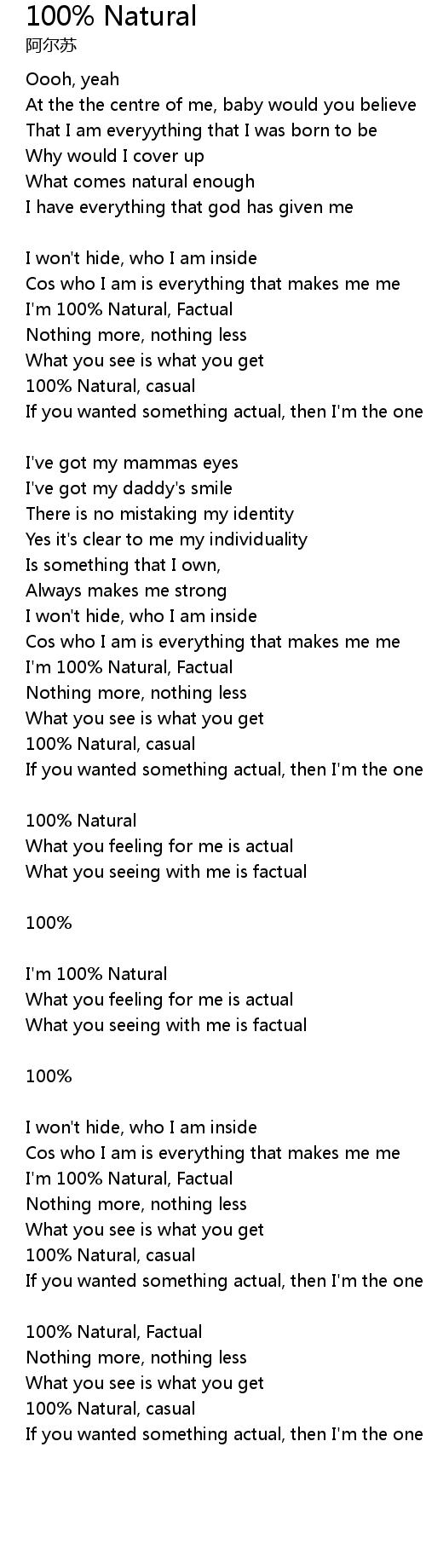I'm 100% Natural, Factual |