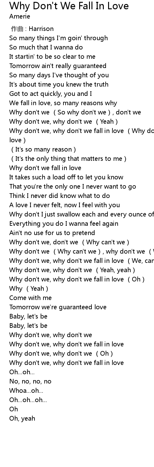| [00:46.550] | Why don't we, why don't we fall in love (Why don't we fall in love) |