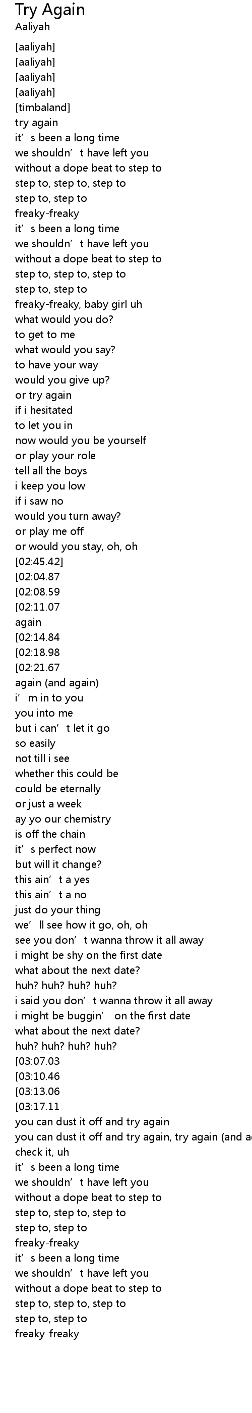 | [03:03.17][02:21.67][01:40.65][00:59.36] | dust yourself off and try again, try again (and again) |