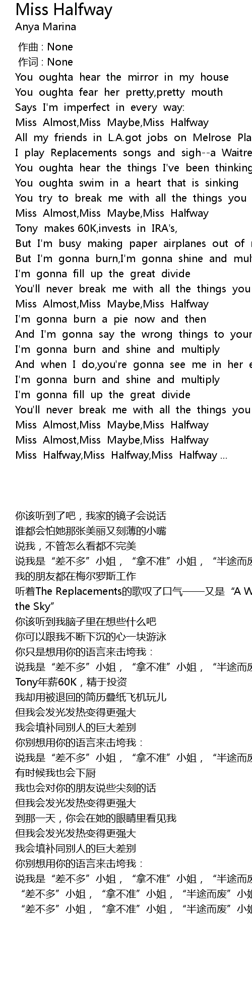 | [02:23.308] | Miss Almost,Miss Maybe,Miss Halfway |