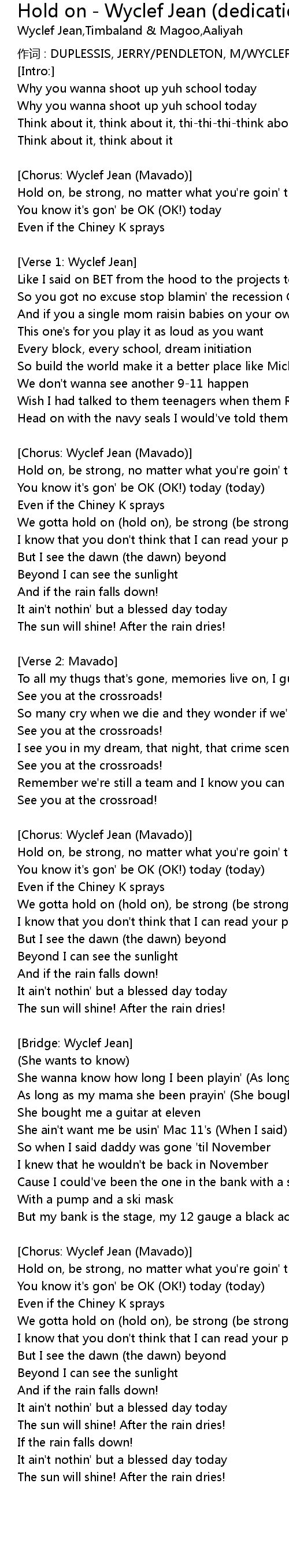 | We gotta hold on hold on, be strong be strong | |