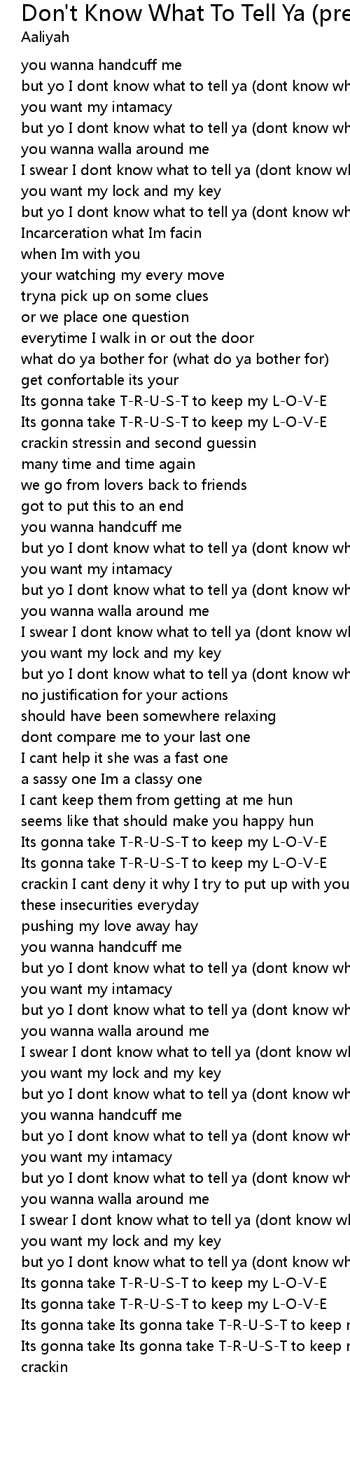 but yo I dont know what to tell ya (dont know what to tell ya) |