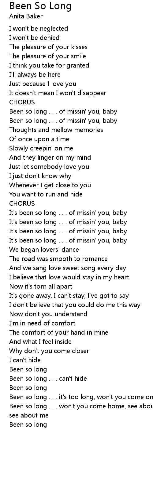 Been so long . . . of missin' you, baby |