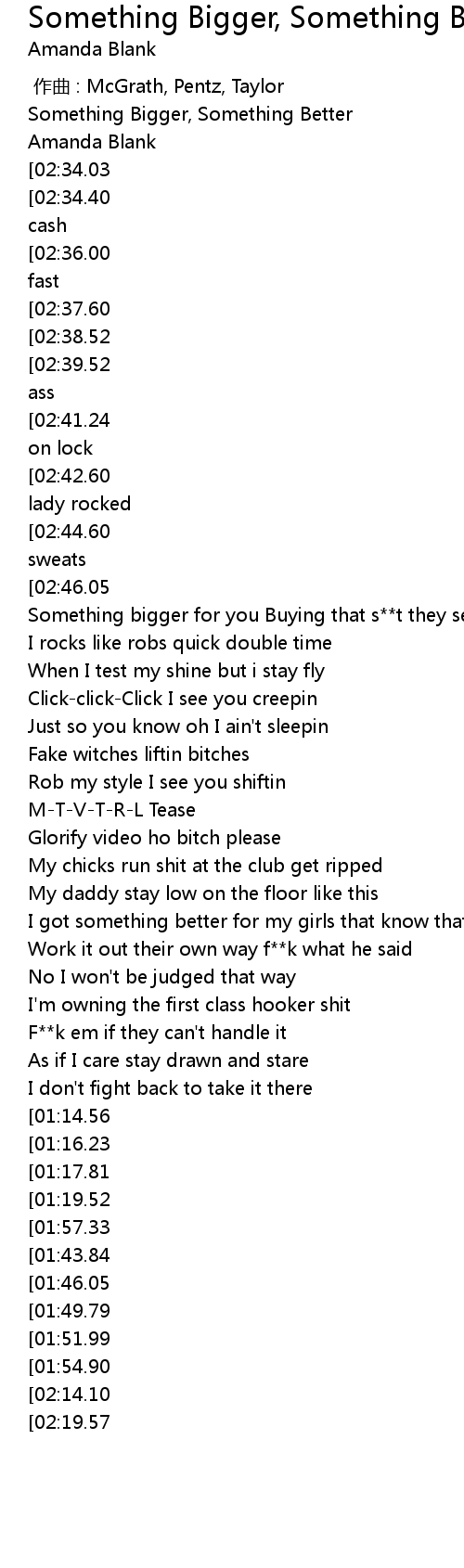 | [02:53.83][02:39.52][01:27.44][00:49.41][00:13.26] | Show them how you work that ass |
