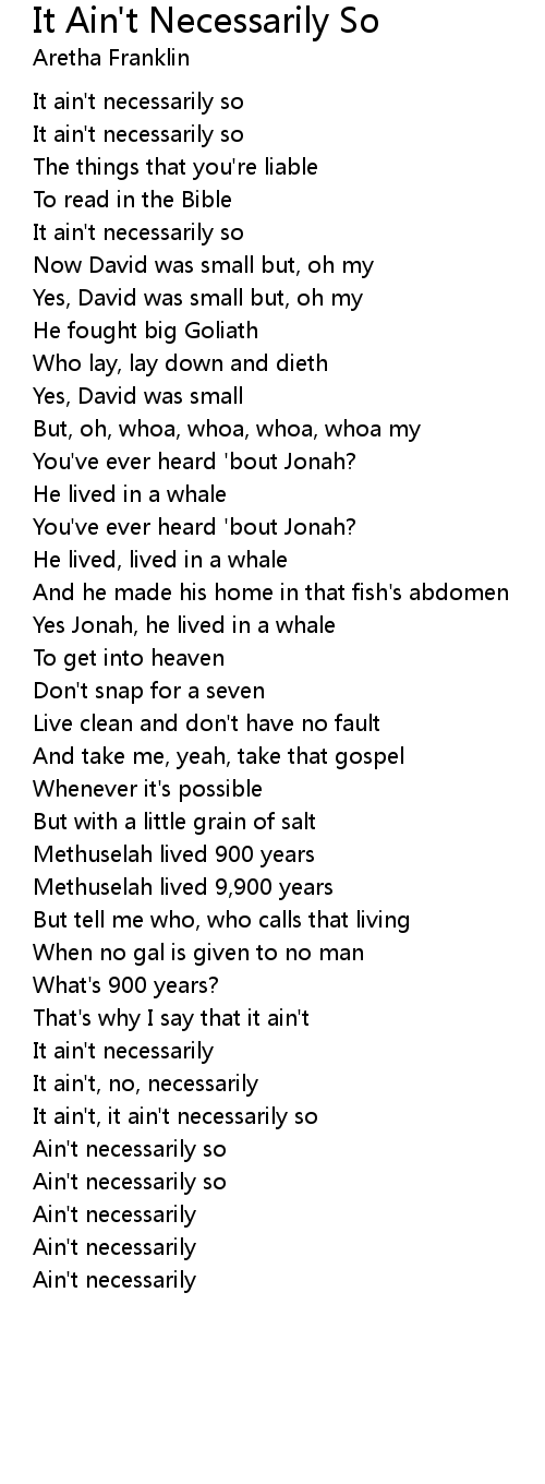 It ain't, it ain't necessarily so