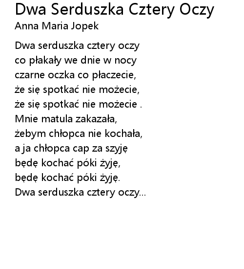 | Song | Dwa Serduszka Cztery Oczy |