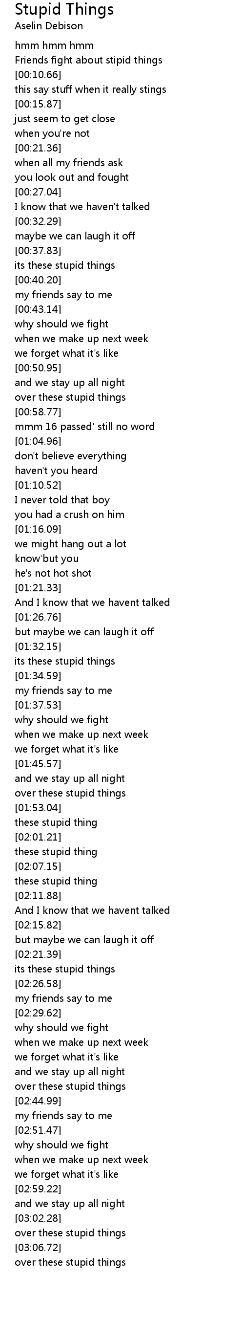 Stupid Things Lyrics