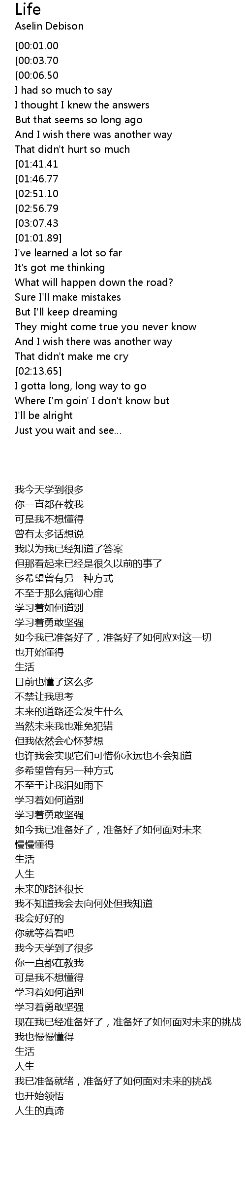 | [03:24.09][03:07.43][03:01.55][02:08.90][02:02.63][00:55.78] | Life..... |