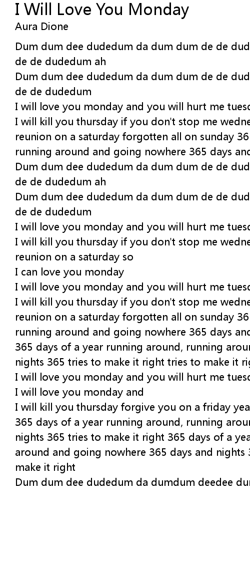 I will kill you thursday if you don't stop me wednesday forgive you on a friday reunion on a saturday forgotten all on sunday 365 days of a year running around, running around and going nowhere 365 days and nights 365 tries to make it right 365 days of a year running around, running around and going nowhere 365 days and nights 365 tries to make it right tries to make it right |