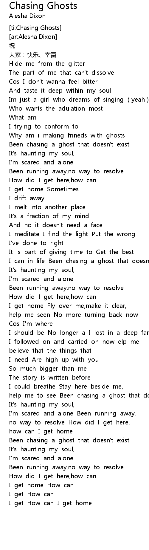 | [01:35.40] | I can in life Been chasing a ghost that doesn't exist |