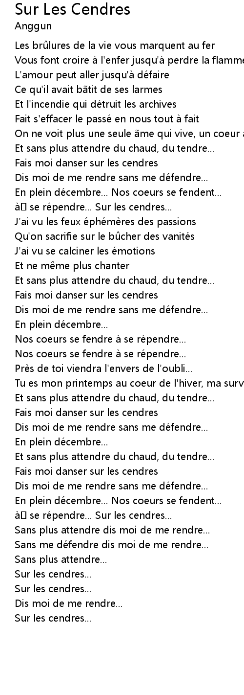 | Vous font croire a l' enfer jusqu'a perdre la flamme | |