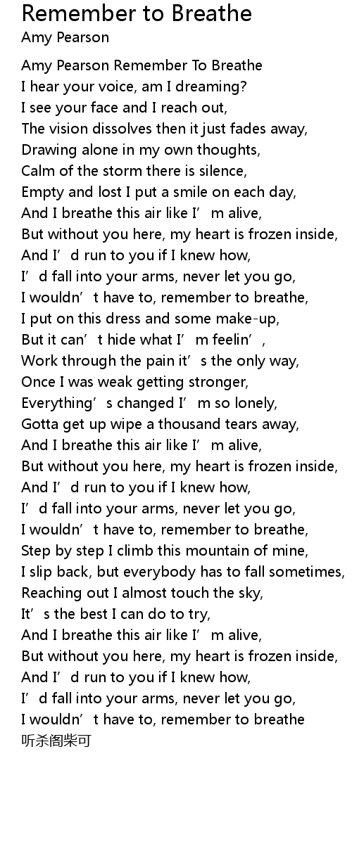 | [00:00.81] | Amy Pearson Remember To Breathe |