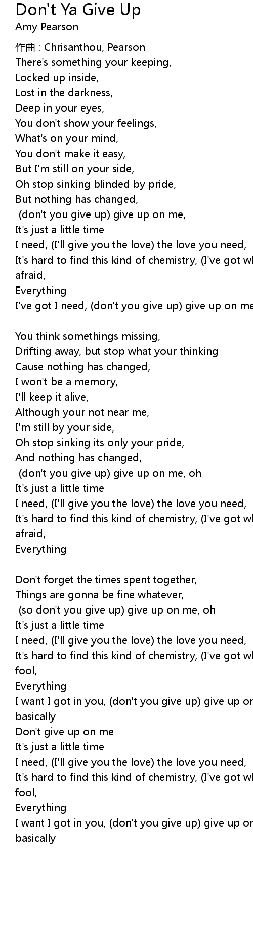 | I' ve got I need, don' t you give up give up on me, I miss you so much basically Verse 2 | |
