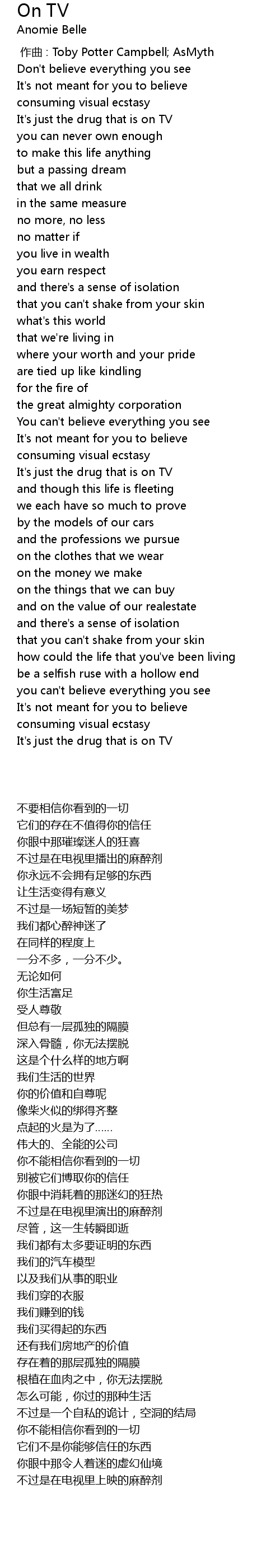 | [00:00.000] | zuo qu : Toby Potter Campbell AsMyth |