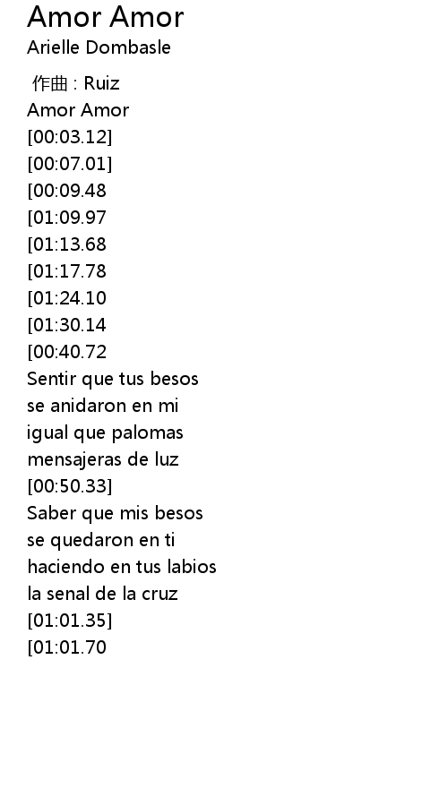 | [01:53.04][00:09.48] | Amor' amor' amor |