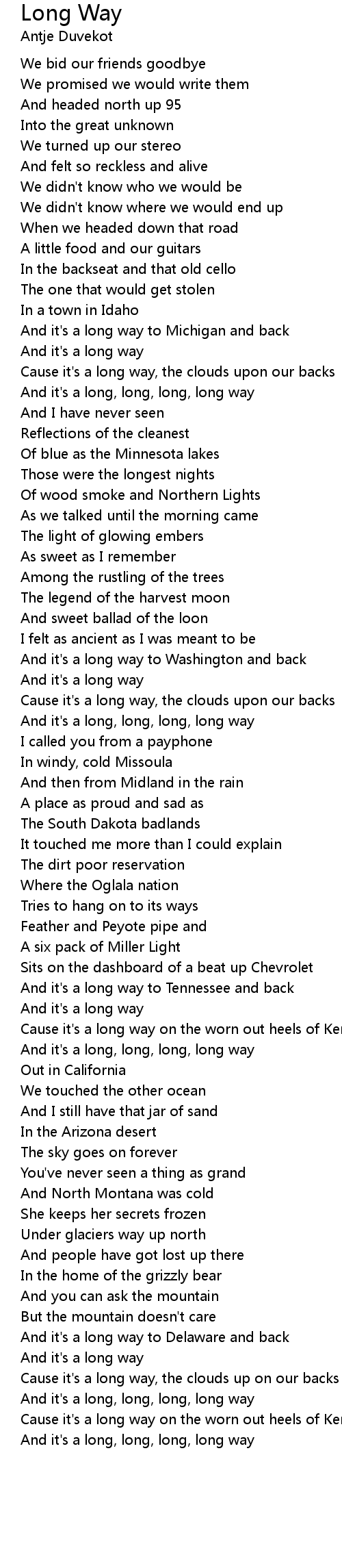 Cause it's a long way on the worn out heels of Kerouac |