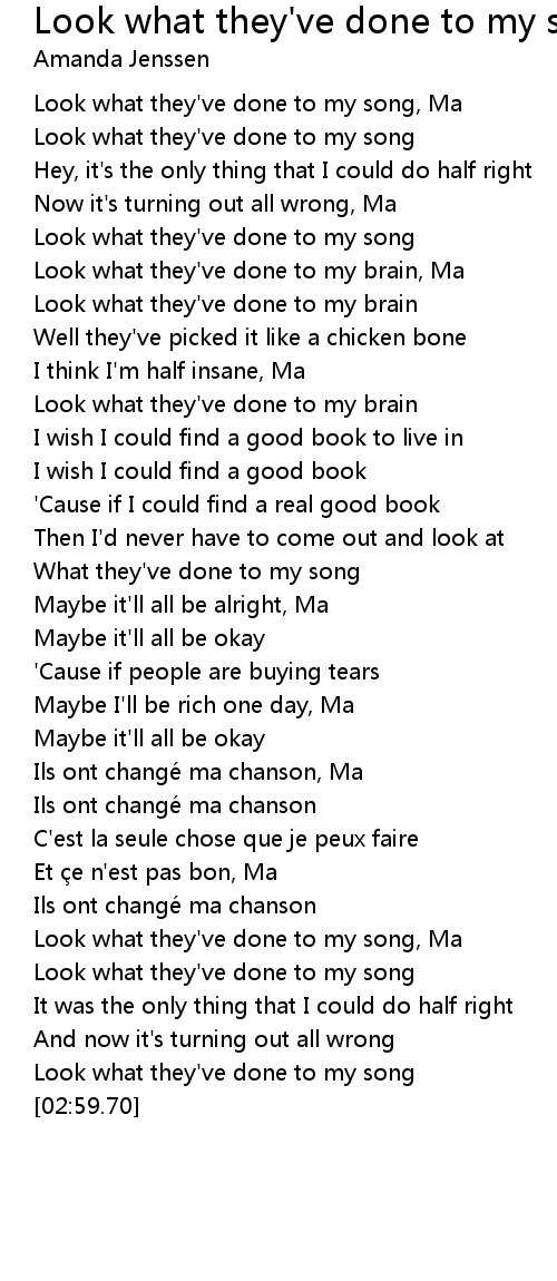 | [02:24.69] | Look what they' ve done to my song, Ma |