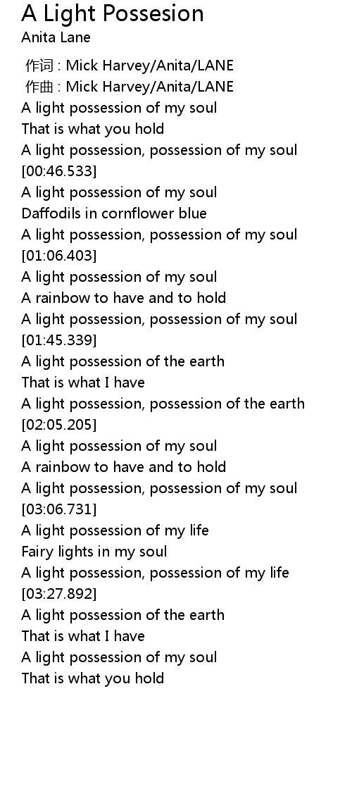 | [00:00.000] | 作词 : Mick Harvey/Anita/LANE |