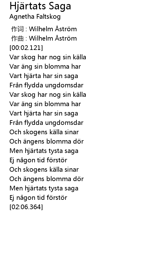 | [00:00.000] | 作词 : Wilhelm Åström |