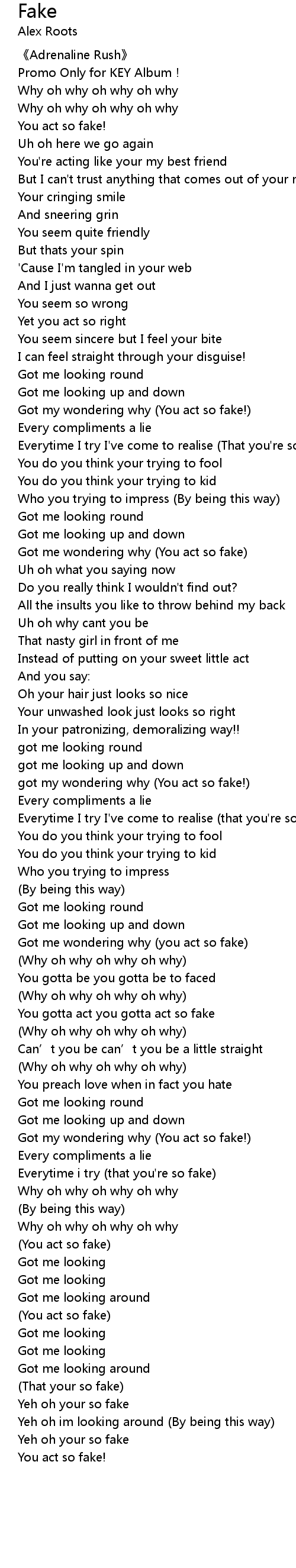 | Got me wondering why (you act so fake) | |