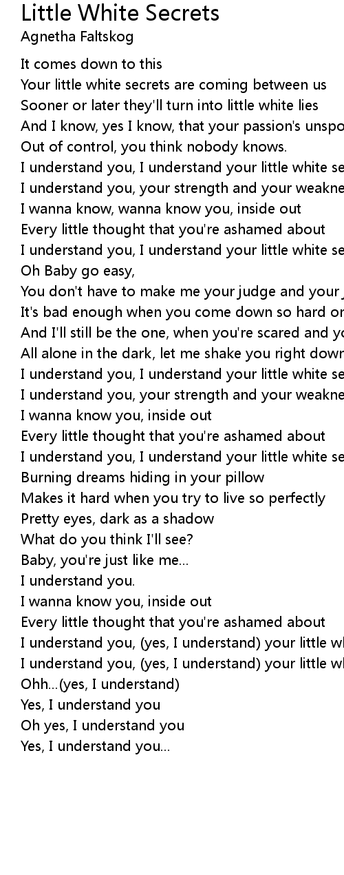 I understand you, (yes, I understand) your little white secrets |