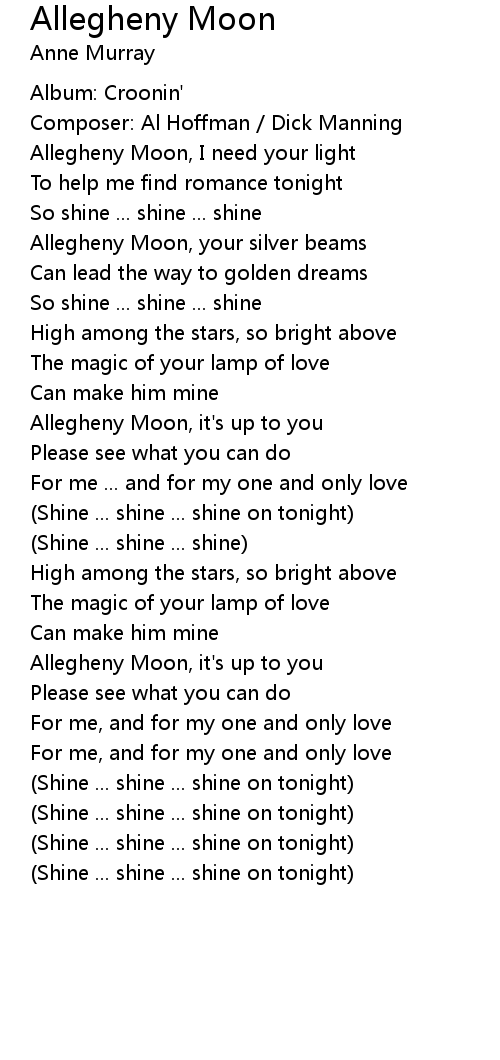 Allegheny Moon, I need your light |
