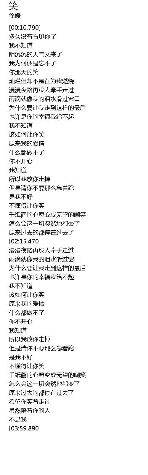 | [03:47.370] | xī wàng nǐ xiào zhe zǒu guò |
