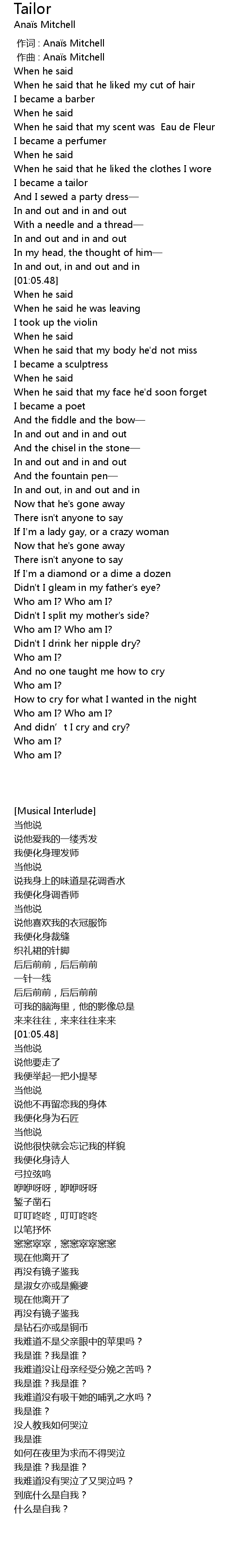 | [00:00.000] | 作词 : Anaïs Mitchell |