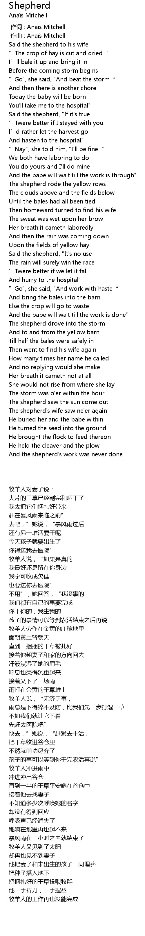 | [00:00.000] | 作词 : Anaïs Mitchell |