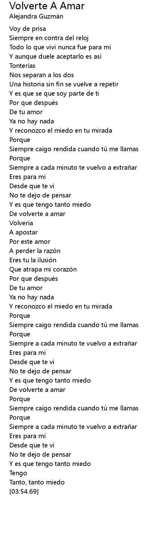 | [03:01.21] | De volverte a amar |