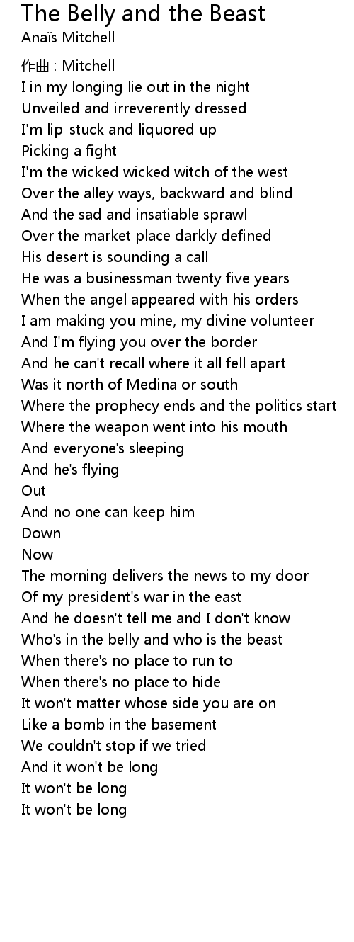 | Song | The Belly and the Beast |