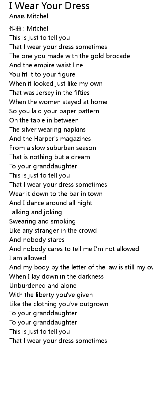 | Song | I Wear Your Dress |