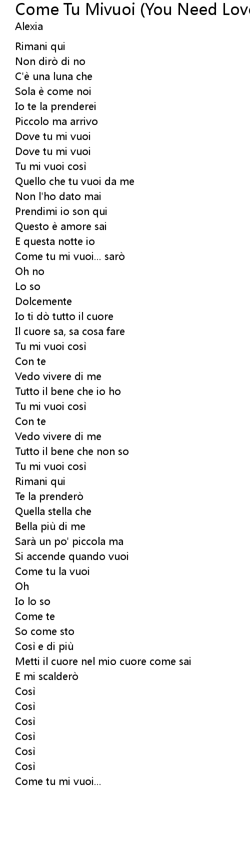 | Song | Come Tu Mivuoi (You Need Love) |