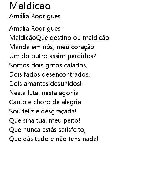 | Song | Maldicao |