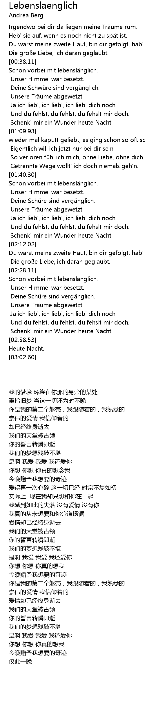 | [02:53.31] | Schenk' mir ein Wunder heute Nacht. |