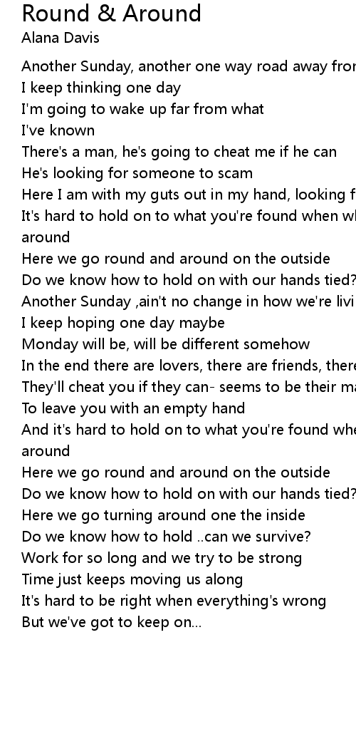 And it's hard to hold on to what you're found when what comes around always goes around |