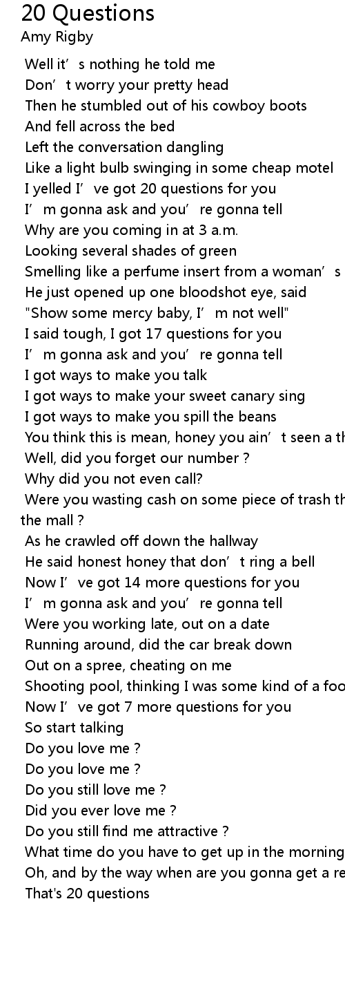| [00:27.840] | I yelled I' ve got 20 questions for you |