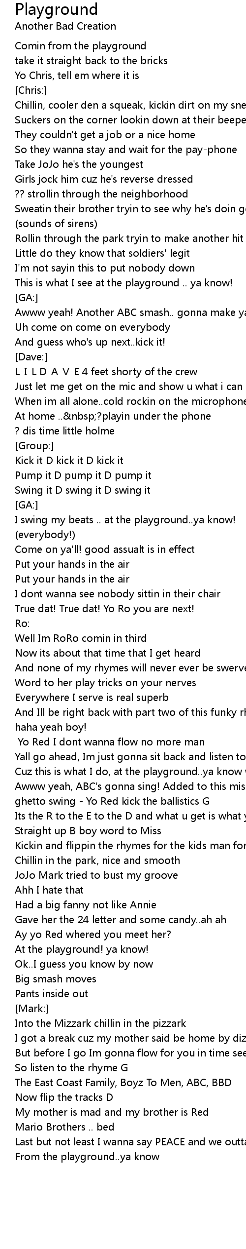 Cuz this is what I do, at the playground..ya know what im sayin!? |