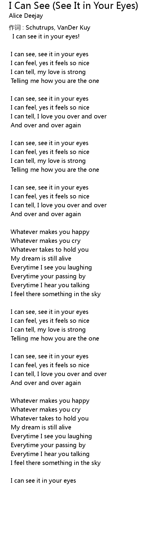 | Song | I Can See (See It in Your Eyes) |