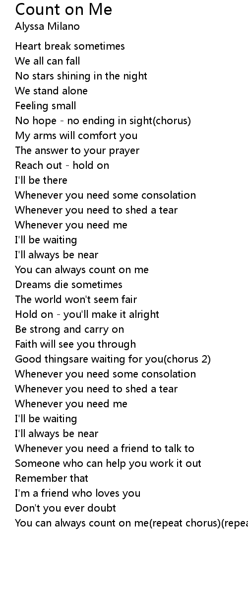 You can always count on me(repeat chorus)(repeat chorus 2 and fade) |